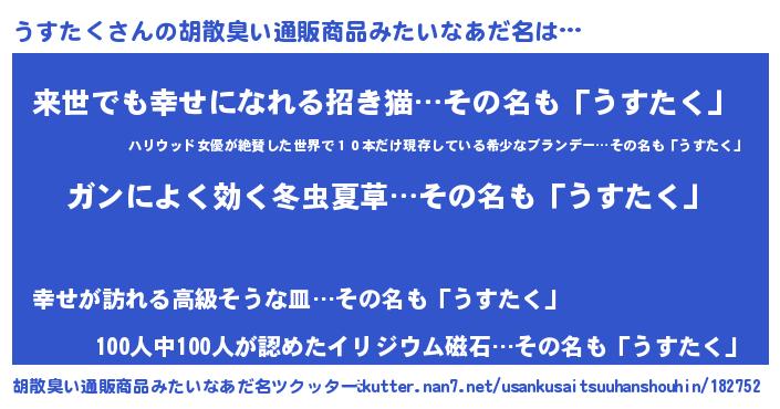 | 意味不明あだ名 | 『自称うすたく』『永久保存うすたく』 |