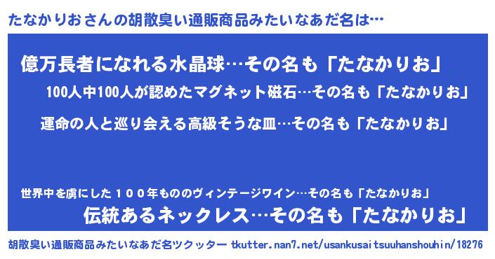 | 肩書あだ名 | 『たなかりお国家主席』『たなかりお中尉』 |