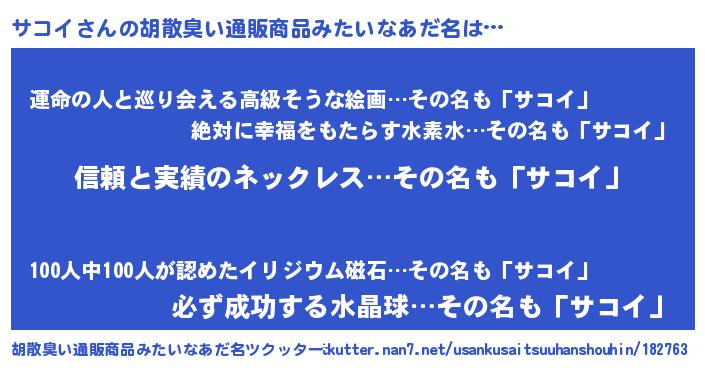 | 意味不明あだ名 | 『とにかく怪しいサコイ』 |