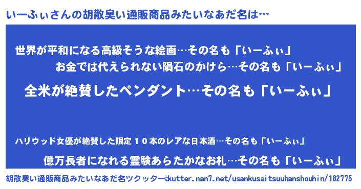 | 意味不明あだ名 | 『とにかく怪しいいーふぃ』 |