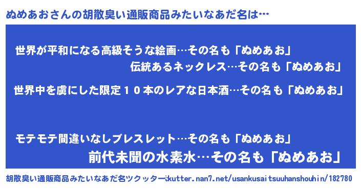 | 男性向けラノベタイトル風あだ名 | 『この素晴らしい世界にぬめあおを!』 |
