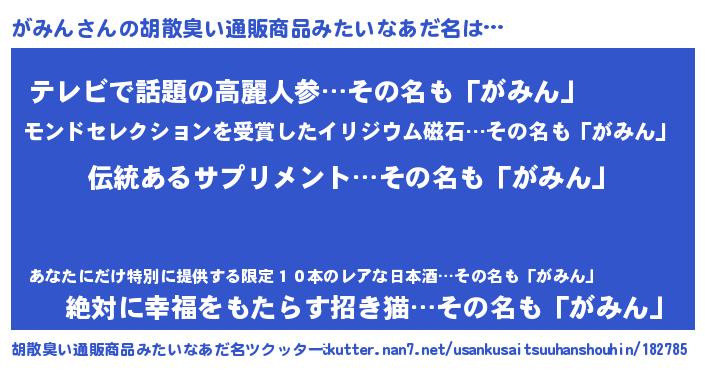 | ヘコむあだ名 | 『がみお』『がみん(小並感)』 |