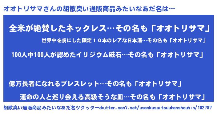 | 欧米人風あだ名 | 『ダニエルオオトリサマ』 |