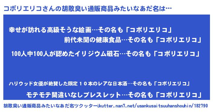 | 男性向けラノベタイトル風あだ名 | 『おまえをオタクにしてやるから、俺をコボリエリコにしてくれ! 』 |