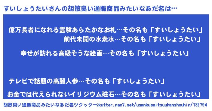 | 男性向けラノベタイトル風あだ名 | 『やはりすいしょうたいの青春ラブコメはまちがっている 』 |