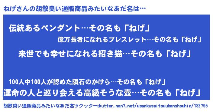 | 意味不明あだ名 | 『永久保存ねげ』『とにかく怪しいねげ』 |
