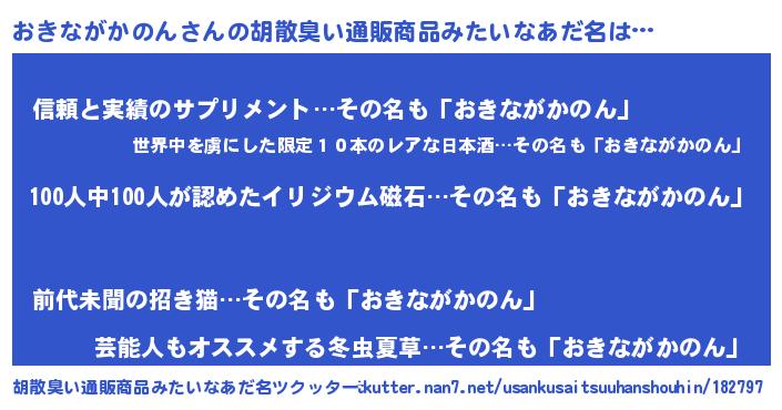 | ヘコむあだ名 | 『おきっ子』『おきながかのん(小並感)』 |