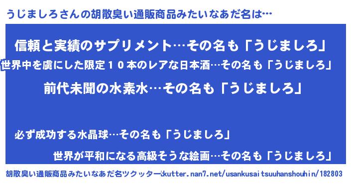 | 意味不明あだ名 | 『永久保存うじましろ』 |