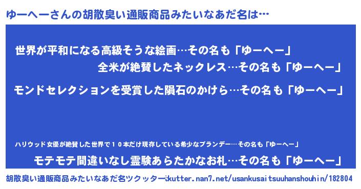 | ヘコむあだ名 | 『酢こんぶ』『ゆーにゅー』『ゆーを』 |