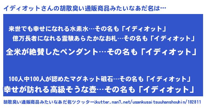 | 男性向けラノベタイトル風あだ名 | 『イディオットに滅ぼされるだけの簡単なお仕事です』 |
