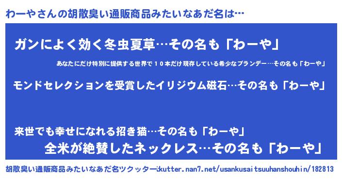| 意味不明あだ名 | 『眠気覚ましガムわーや味』『自称わーや』 |