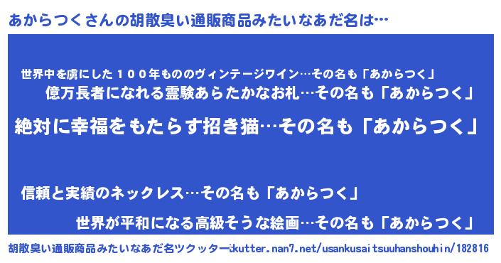 | 2chまとめサイト | サイト名『ニューあからつく速』 |