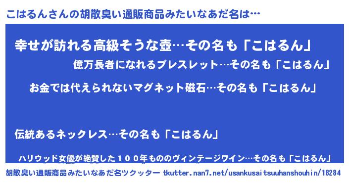 こはるんさんの胡散臭い通販商品みたいなあだ名をツクッター!