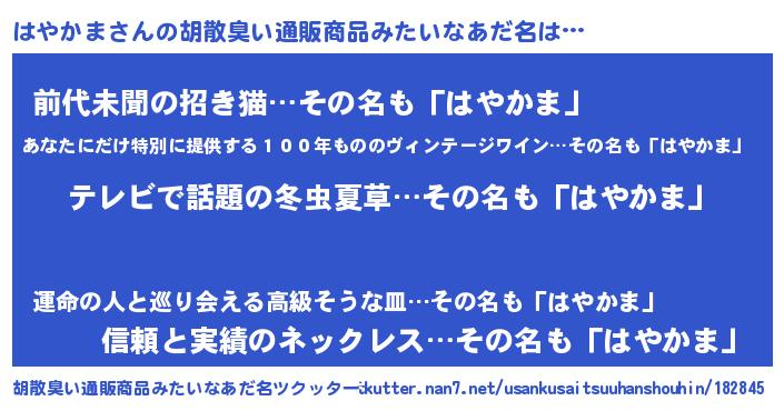 | ヘコむあだ名 | 『はやかま(震え声)』『はやっ子』 |