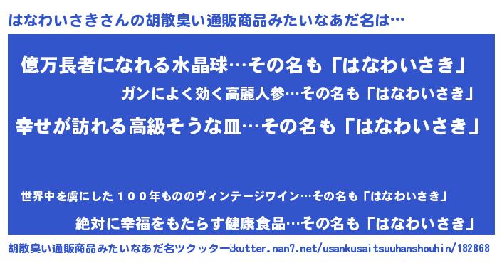 | 欧米人風あだ名 | 『アンジェラ・はなわいさき』 |