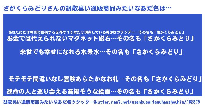 | 意味不明あだ名 | 『永久保存さかくらみどり』 |
