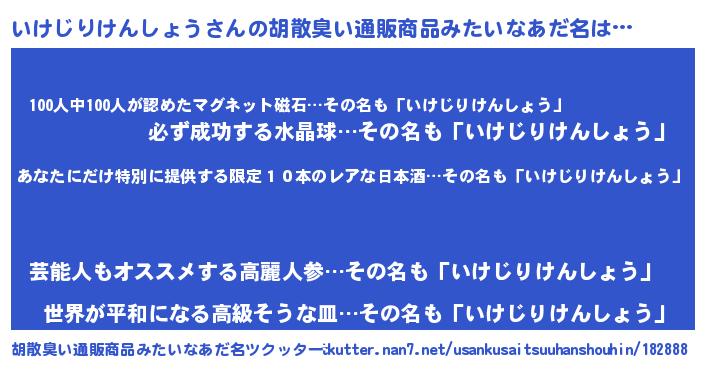 | 意味不明あだ名 | 『住所不定無職いけじりけんしょう(59歳)』 |