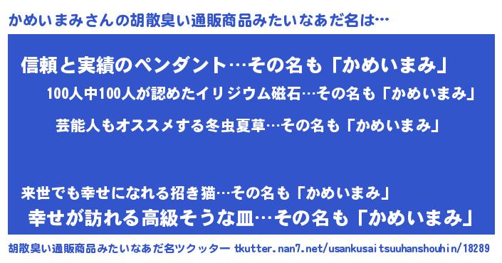 | 肩書あだ名 | 『かめいまみ中将』『かめいまみ総統』 |