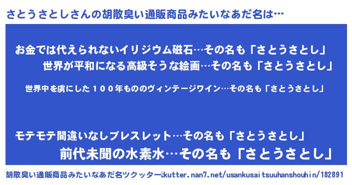| 意味不明あだ名 | 『住所不定無職さとうさとし(13歳)』 |