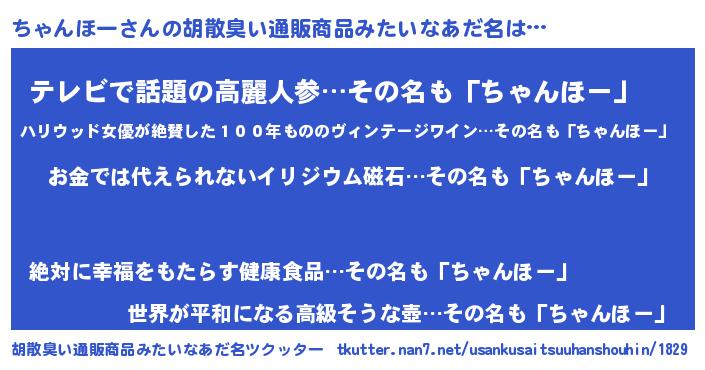 | ヘコむあだ名 | 『豆乳』『ちゃんほー(震え声)』 |