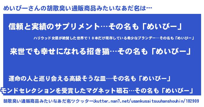 | 意味不明あだ名 | 『永久保存めいびー』 |