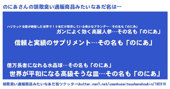 | 男性向けラノベタイトル風あだ名 | 『ダンジョンにのにあを求めるのは間違っているだろうか』 |