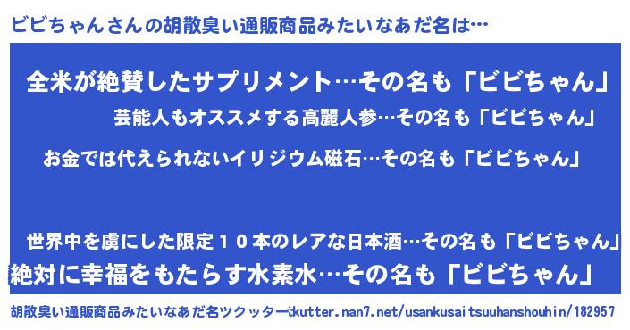 | 女子向けラノベタイトル風あだ名 | 『ビビちゃん恋絵巻』 |