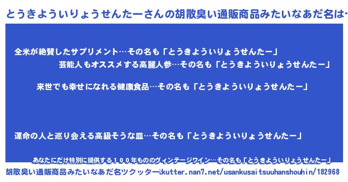 | 意味不明あだ名 | 『永久保存とうきよういりょうせんたー』 |