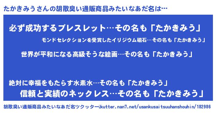 | ファンタジー風あだ名 | 『エターナルタカキミウー』『タカフェル』 |