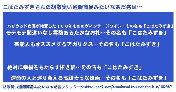 | ヒーロー風カッコイイあだ名 | 『究極戦士コハタミズキ』『仮面コハダー』 |