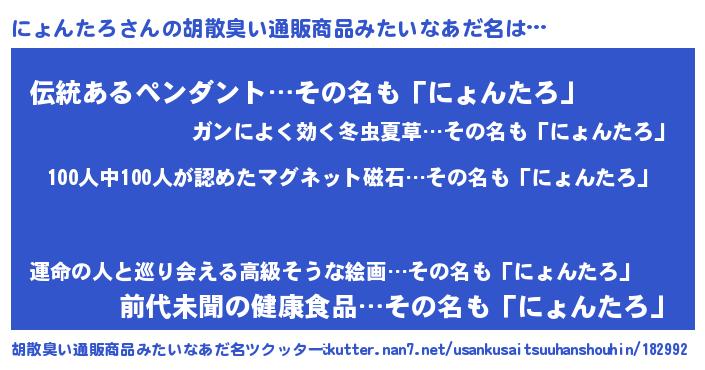 | ヒーロー風カッコイイあだ名 | 『正義の使者にょんたろ』『魔戒騎士ニョ』 |