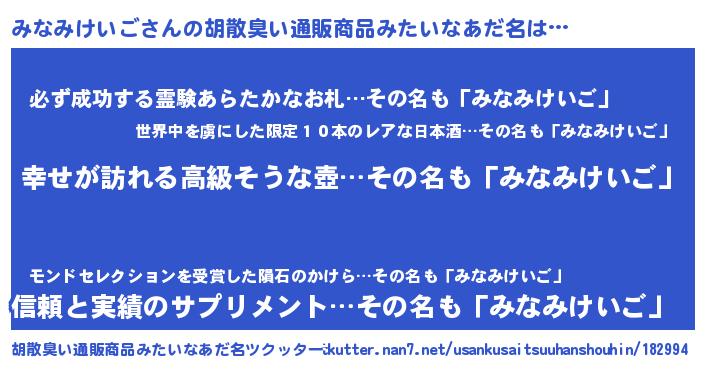 | 伝説のあだ名 | 『秘められし忍者みなみけいご』 |