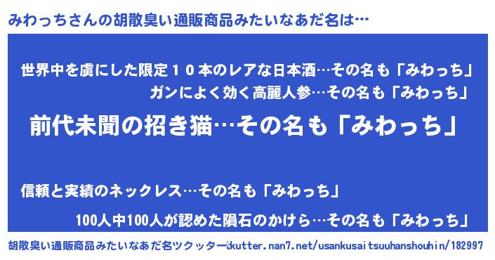 | 意味不明あだ名 | 『永久保存みわっち』『自称みわっち』 |