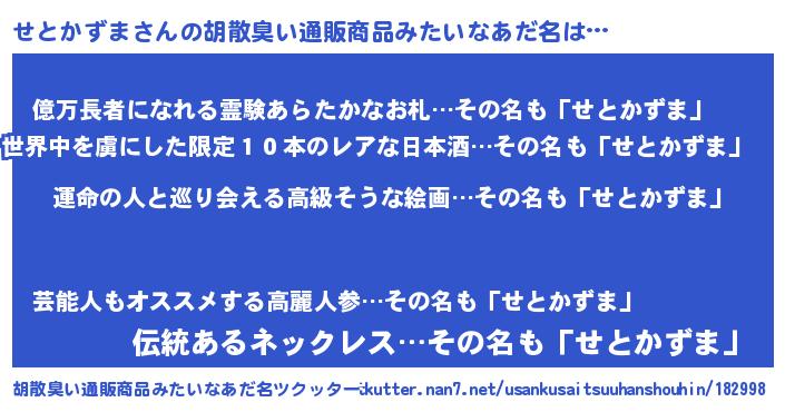 | 肩書あだ名 | 『せとかずま総理大臣』『せとかずま団長』 |