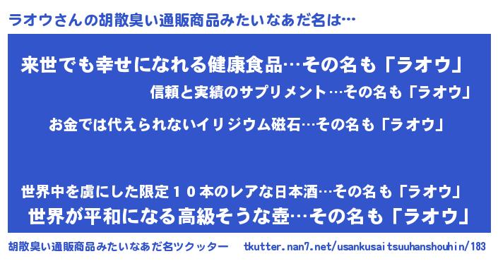 ラオウさんの胡散臭い通販商品みたいなあだ名をツクッター!