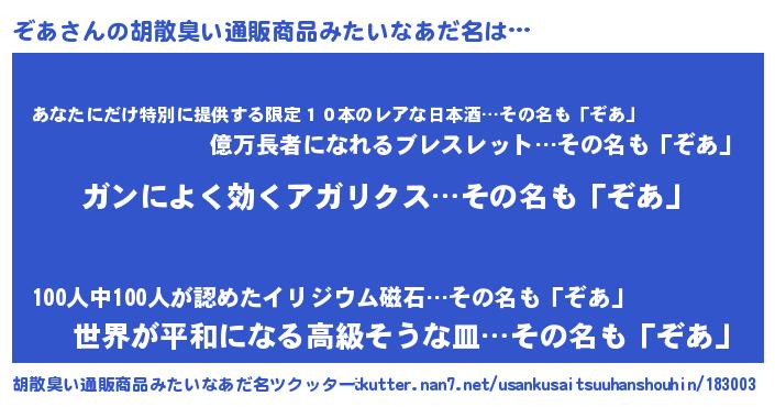 | 意味不明あだ名 | 『自称ぞあ』『住所不定無職ぞあ(68歳)』 |