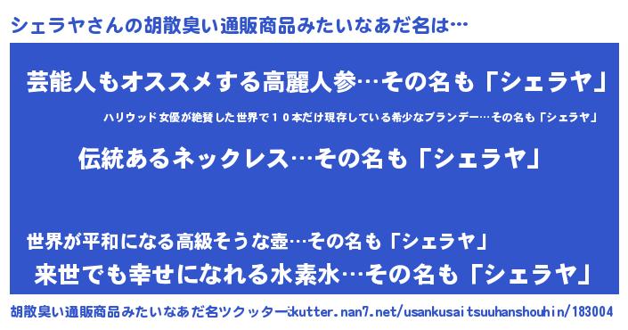| 意味不明あだ名 | 『とにかく怪しいシェラヤ』 |