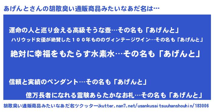 | ヘコむあだ名 | 『あげんと(震え声)』『レバニラ』 |