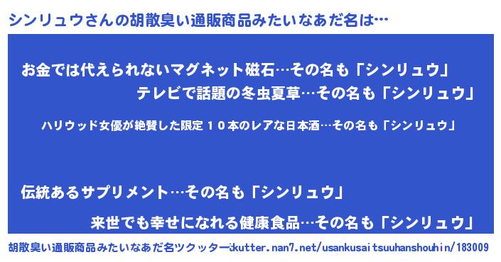 | 意味不明あだ名 | 『住所不定無職シンリュウ(56歳)』 |
