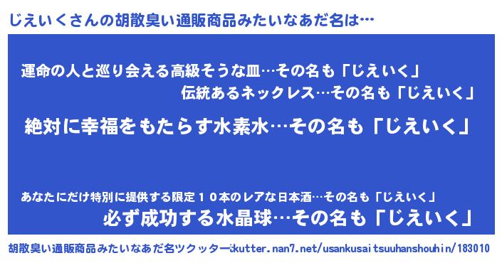 | 意味不明あだ名 | 『永久保存じえいく』『ペロリンじえいく』 |