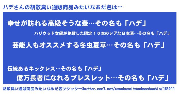 | ヘコむあだ名 | 『レバニラ』『ハデにー』『ハデお』 |