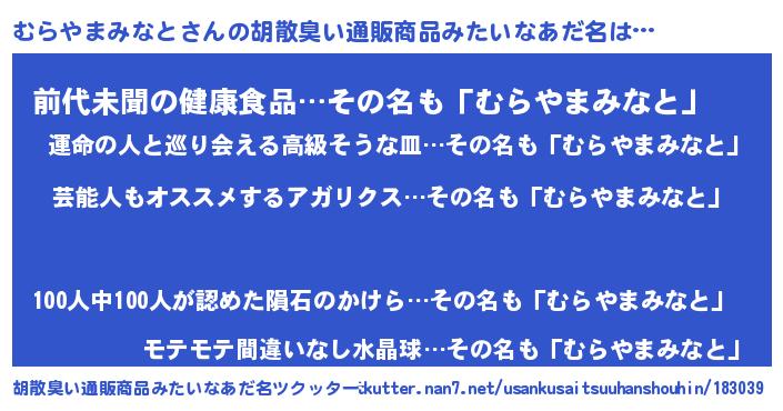 | ヘコむあだ名 | 『むらやまみなと(笑)』『むらにー』 |