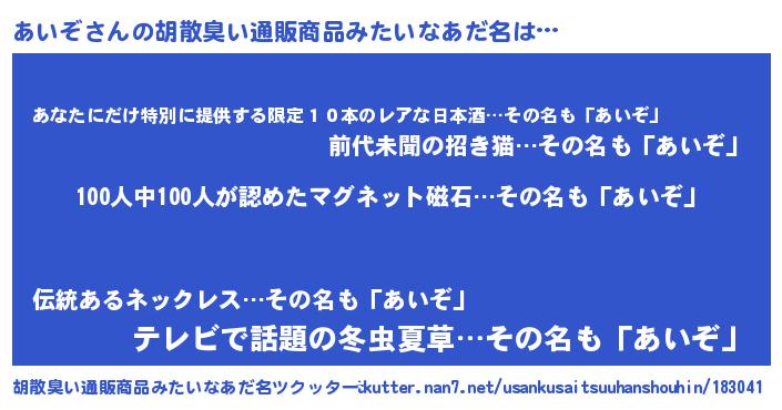 | ヘコむあだ名 | 『あいぞ(笑)』『あいっぺ』 |