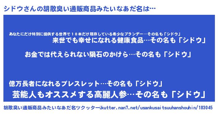 | 意味不明あだ名 | 『眠気覚ましガムシドウ味』『自称シドウ』 |