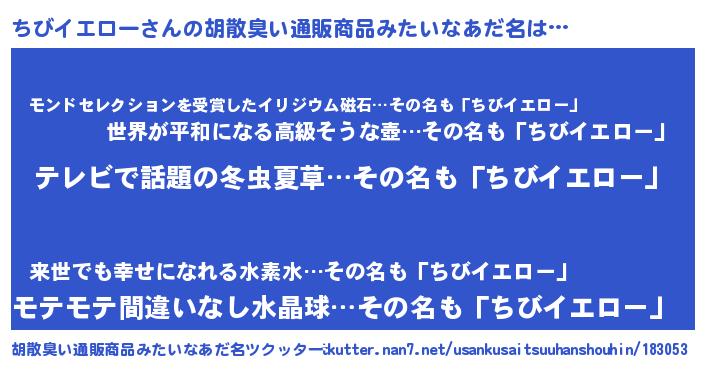 | 男性向けラノベタイトル風あだ名 | 『転生したらちびイエローだった件』 |