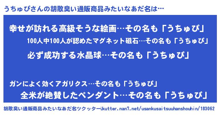 | 意味不明あだ名 | 『ペロリンうちゅぴ』『自称うちゅぴ』 |