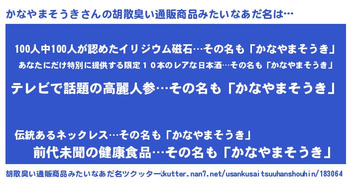 | 意味不明あだ名 | 『自称かなやまそうき』 |