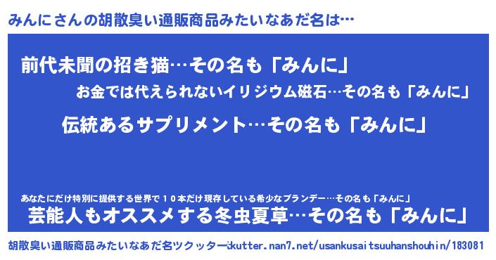 | 女子向けラノベタイトル風あだ名 | 『みんにの卵を拾いまして』『闇のみんに』 |