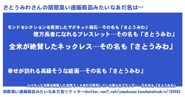 | 意味不明あだ名 | 『とにかく怪しいさとうみわ』 |