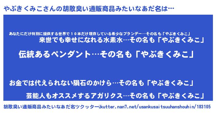 | 意味不明あだ名 | 『とにかく怪しいやぶきくみこ』 |